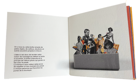 L’idée ici est donc de recréer cette notion de nostalgie en mêlant la boîte à souvenirs, la boîte à biscuits et le principe de l’album photo qui garde ce lien avec le passé.